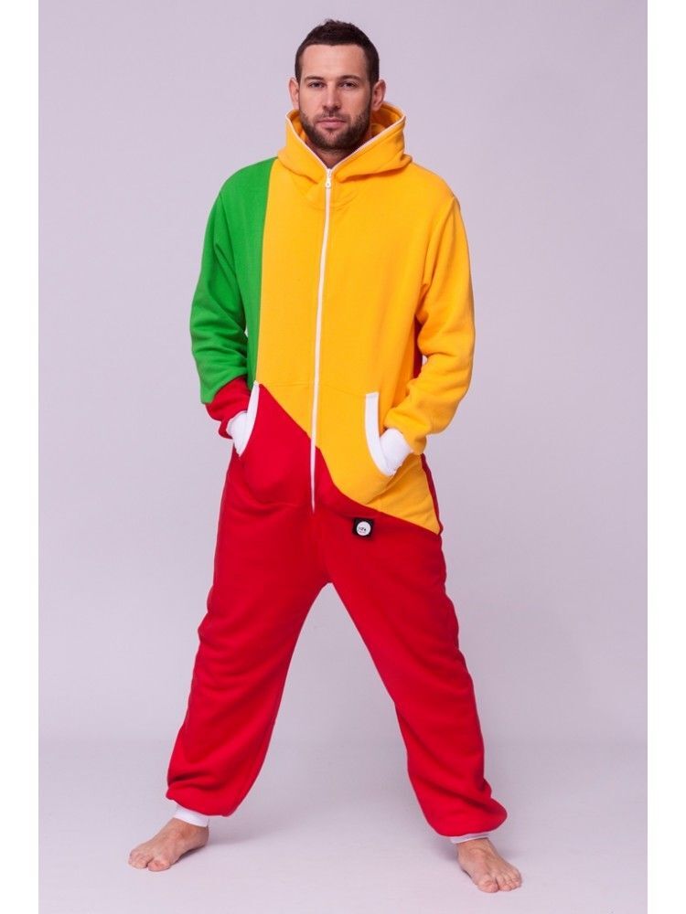 Šiltas trispalvis kombinezonas su Lietuvos vėliavos spalvomis, skirtas tiek vyrams tiek moterims. Kišenės priekyje ir viena nugaroje. Medžiagos vidinė dalis su tankiu pūkeliu, kuris sukuria įpatingą šilumos jausmą ir norą vilkėti kombinezoną nuolat. Sofa Killer kombinezonų modeliai nevaržo judesių, tad puikiai tinka tiek pasyviam tiek aktyviam poilsiui, net miegui. Galite rinktis iš plačios dydžių skalės, o pats rūbas tradiciškai turi būti laisvas, tad kiek didesnis dydis puikiai tiks. Dekoruota Sofa Killer logotipu po kišene priekyje.